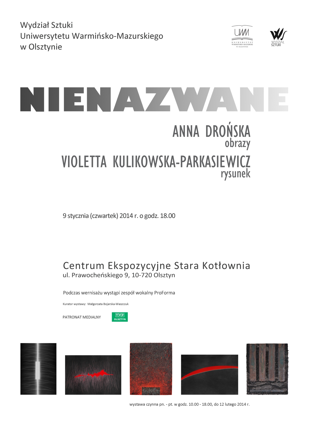Nienazwane. Anna Drońska - obrazy i Violetta Kulikowska-Parksiewicz - rysunki. Wystawa w Starej Kotłowni