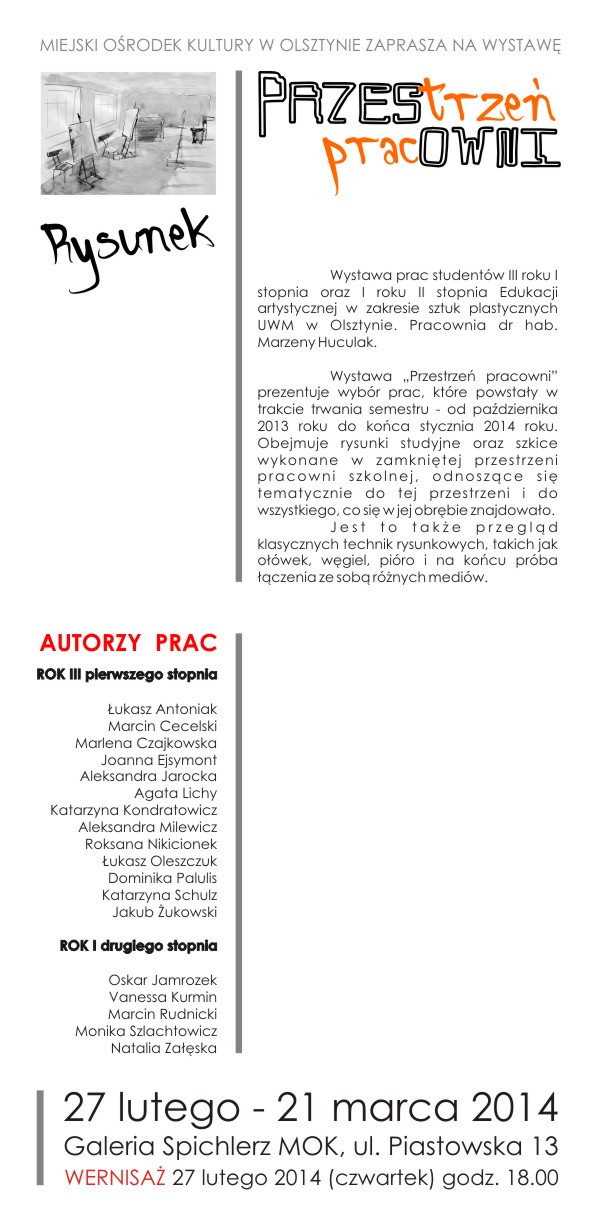 Wystawa rysunku studentów z pracowni dr hab. Marzeny Huculak w Galerii Spichlerz MOK