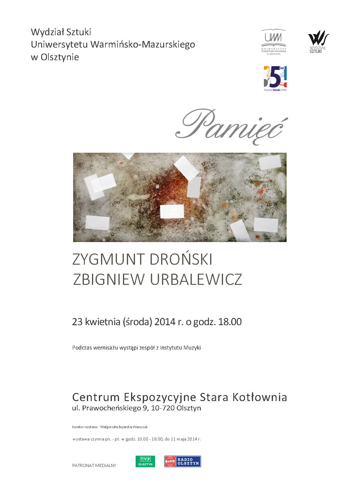 Wystawa Zygmunta Drońskiego i Zbigniewa Urbalewicza "Pamięć" 23 kwietnia w Starej Kotłownini