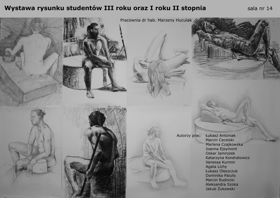 Wystawa rysunku studentów z pracowni dr hab. Marzeny Huculak w Instytucie Sztuk Pięknych