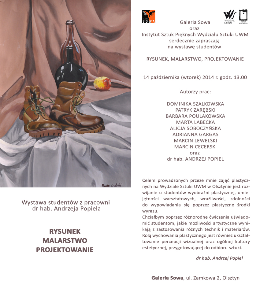 Wystawa rysunku studentów z pracowni dr hab. Andrzeja Popiela w Galerii Sowa