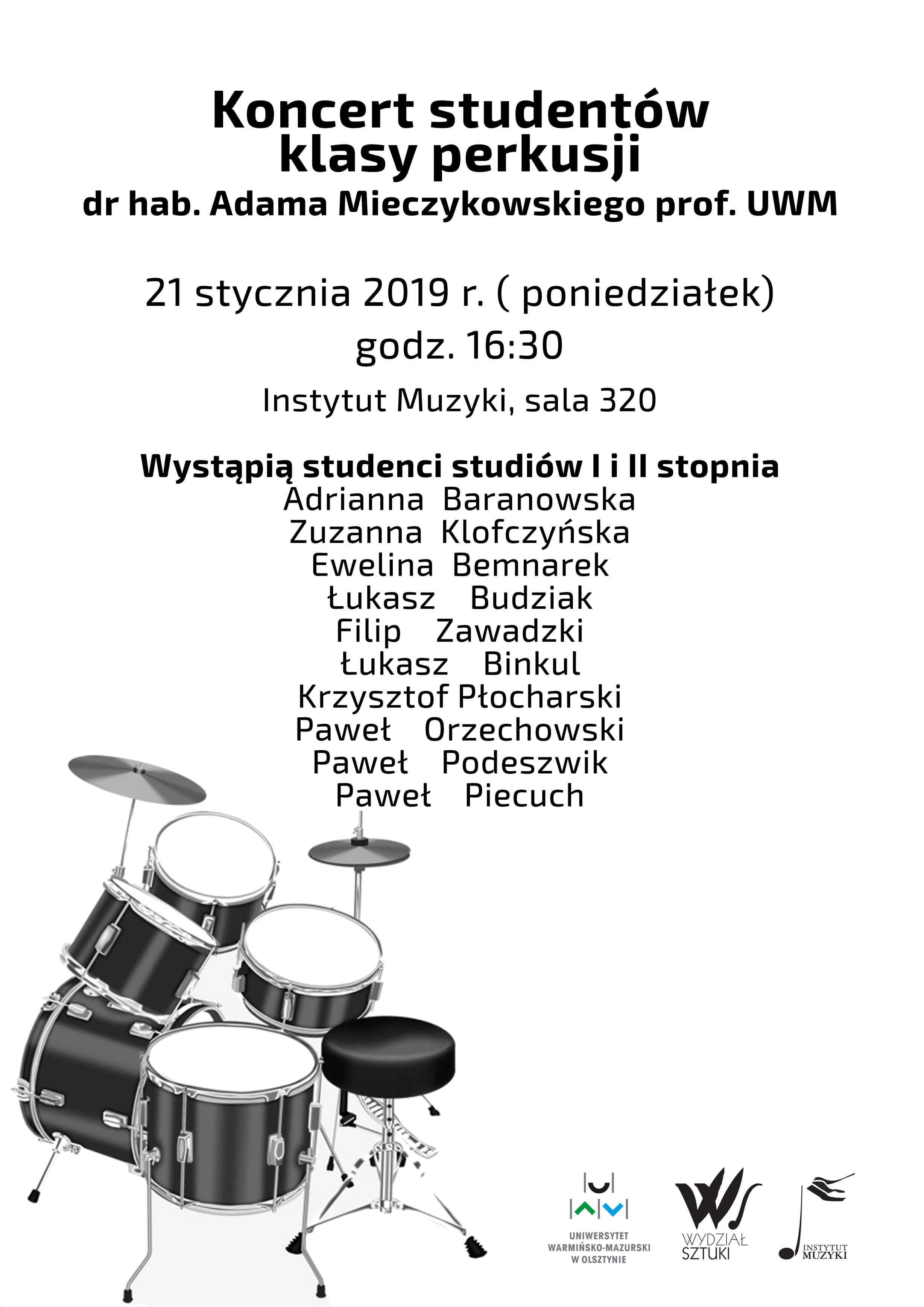 koncert klasy perkusji dr hab. Adama Mieczykowskiego