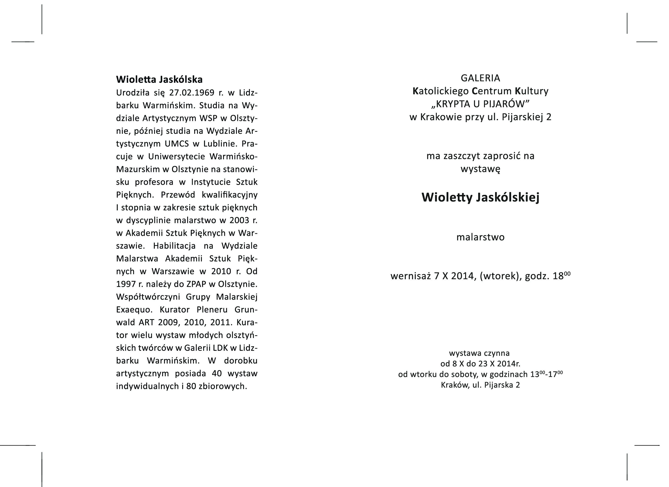 Wystawa malarstwa Wioletty Jaskólskiej w Galerii Krypta u Pijarów w Krakowie