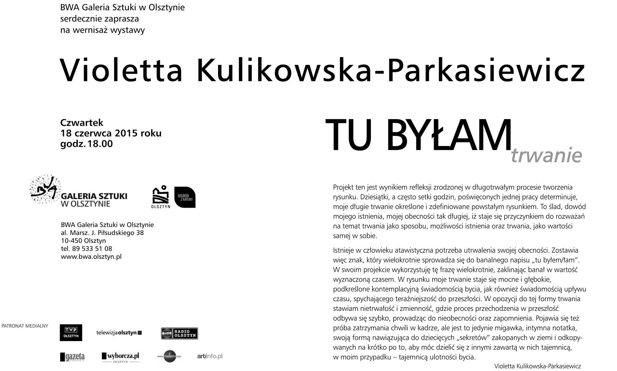 Wystawa Violetty Kulikowskiej-Parkasiewicz "Tu byłam. Trwanie" w BWA Galerii Sztuki w Olsztynie