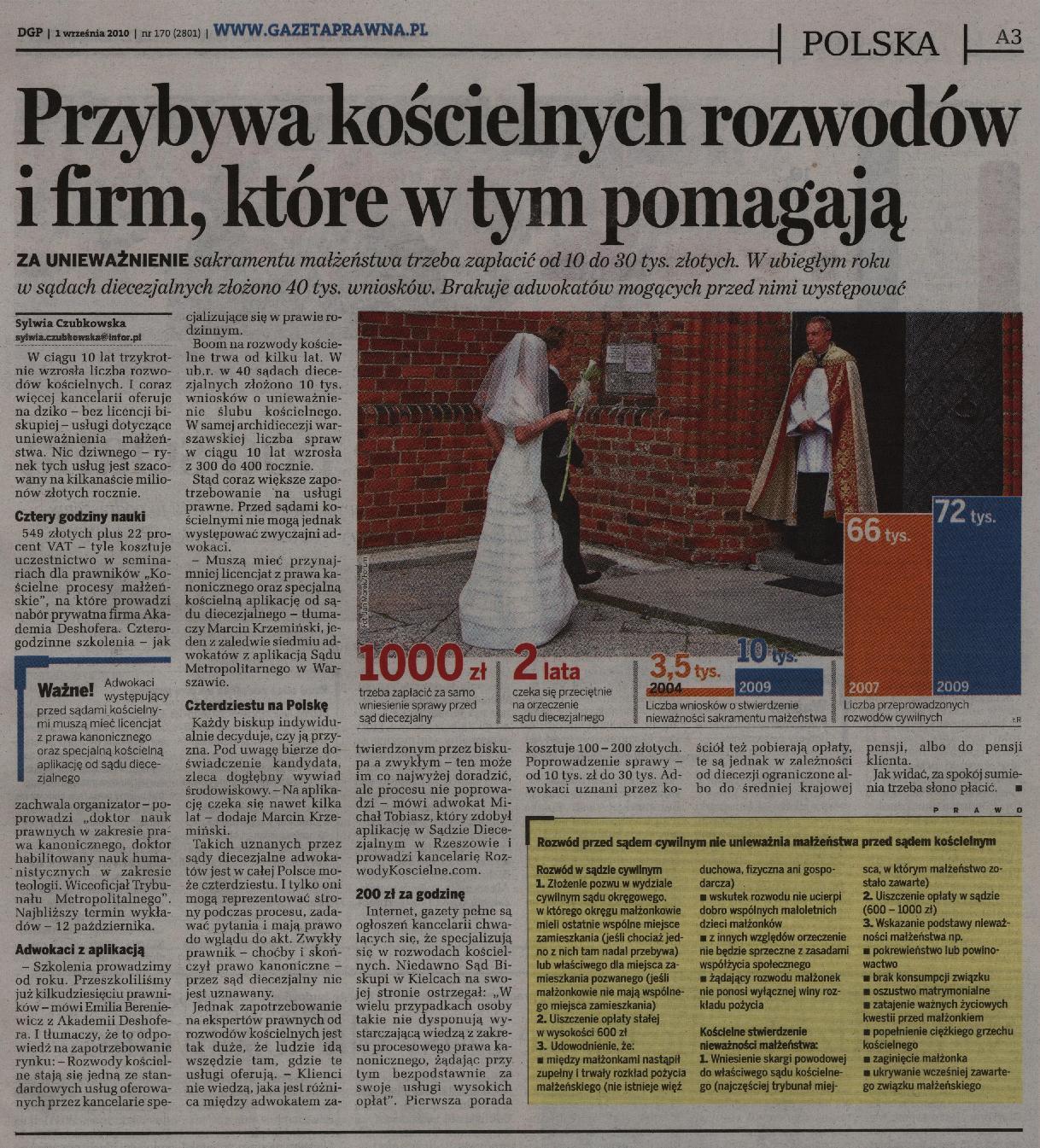 - "Prawo kanoniczne nowym kierunkiem na teologii" - Gazeta Wyborcza, 26.04.2011 r.