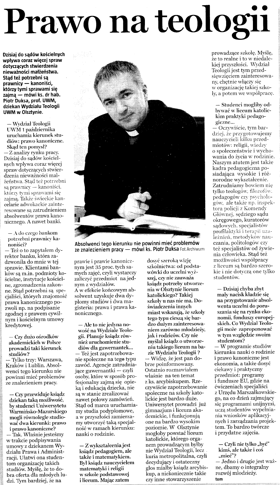 - "Prawo na teologii" - Gazeta Olsztyńska, 26-27.02.2011 r.