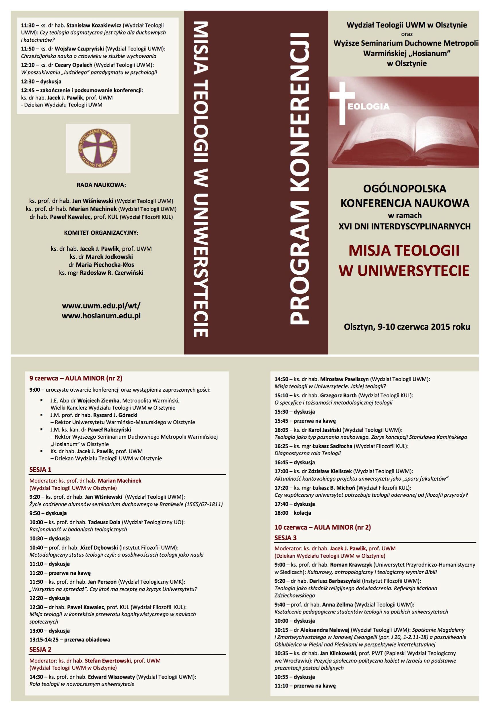 - Organizator: Wydział Teologii UWM w Olsztynie,